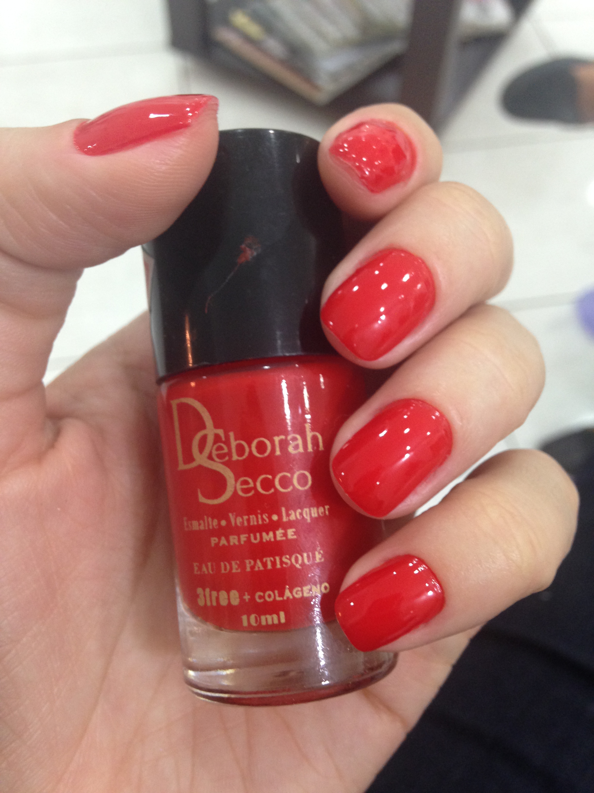 Oi gente tudo bem? O primeiro esmalte que vou mostrar para vocês é esse vermelho da Deborah Secco. Ele é maravilhoso! Um vermelho vibrante que adorei!