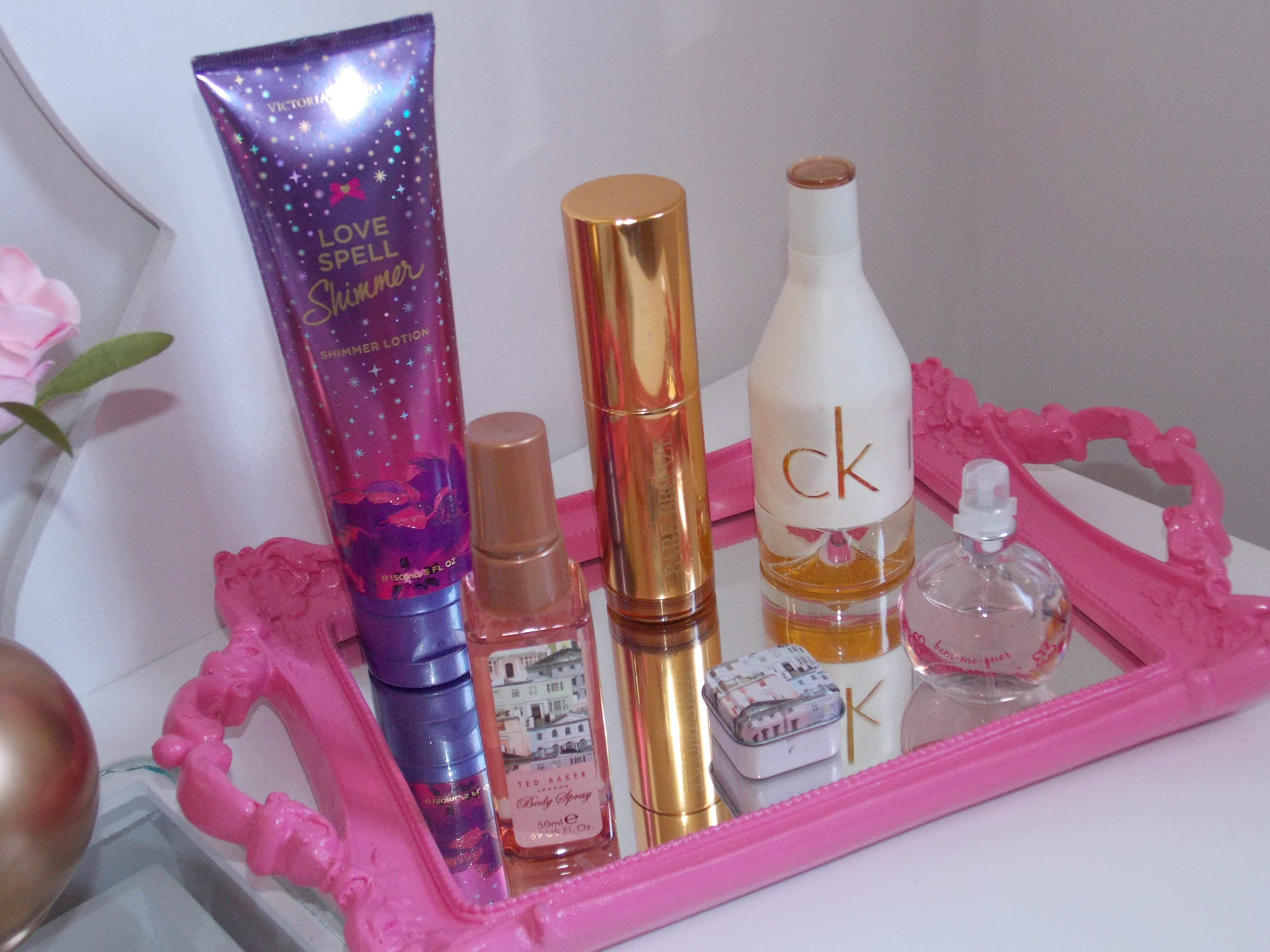 Estava querendo muito uma bandeja espelhada e achei essa linda, comprei na mesma loja que a penteadeira. Coloquei nela perfumes e cremes, amei!