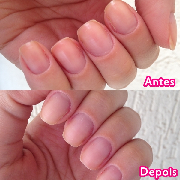 Com o bicarbonato você põe um pouco de água e passa a mistura com a escovinha na unha. Eu passei com pasta de dente mesmo, todo mundo tem em casa, põe a pasta na escova e passa na unha. Gente funciona mesmo!