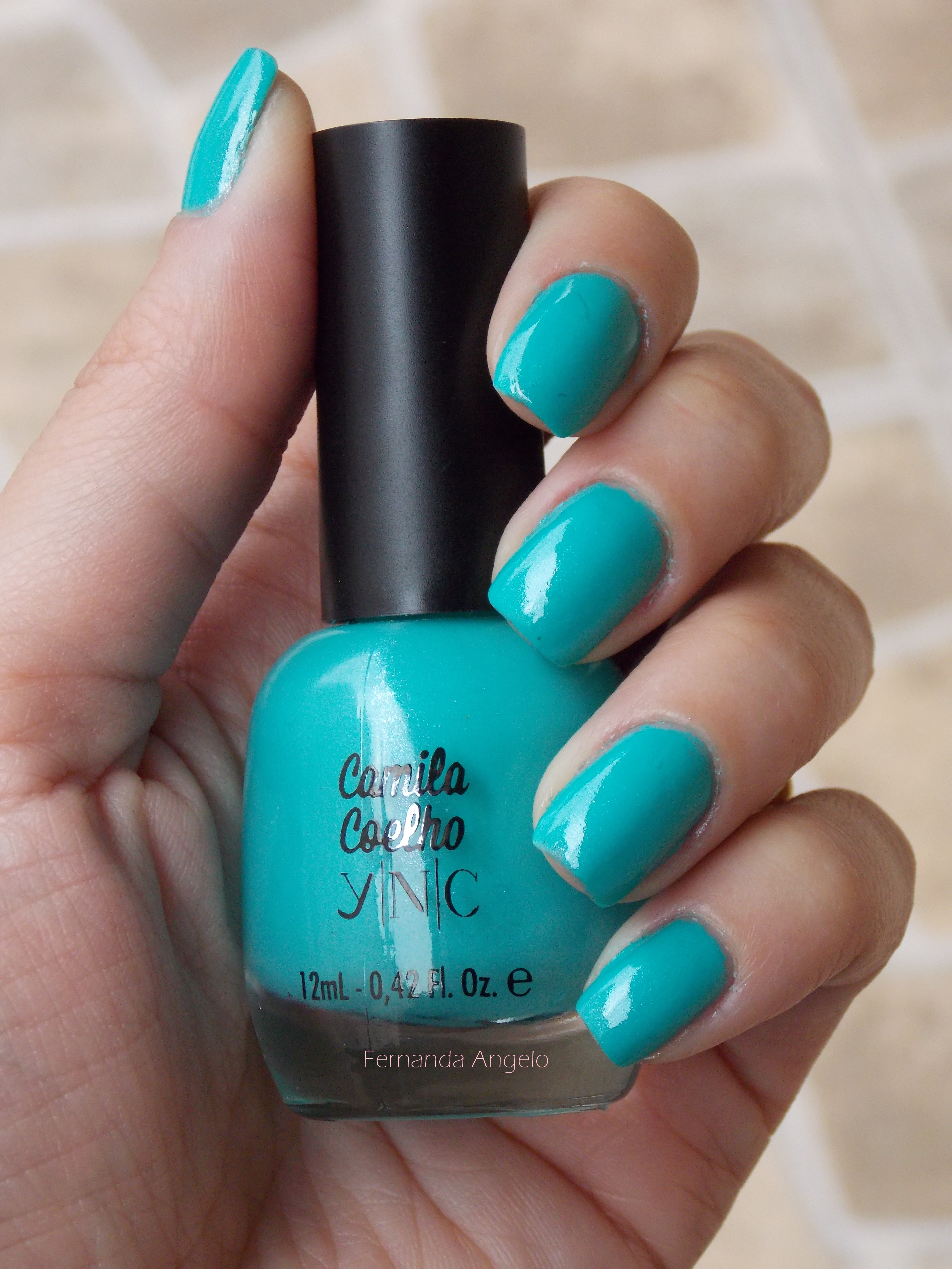 Oi meninas tudo bem? O esmalte da semana é o Blue Jade da Yenzah assinado pela linda Camila Coelho. Semana retrasada fui em um encontro com ela, Camila Coelho, na Ikesaki Liberdade. Ela é bem simpática, linda e maaaaagra. Oh céus! No encontrinho ela falou um pouco sobre beleza que inspira e depois partimos para as Selfies. hehe. Ganhamos um esmalte e eu escolhi o meu preferido da Coleção, o Blue Jade. Lindo, lindo! Na ikesaki estava 8,90.
